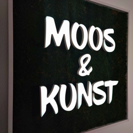 Der angegebene Preis bezieht sich auf ein unbeleuchtetes Moosbild ohne Buchstaben oder Logo. Personalisierungen bitte separat anfragen.